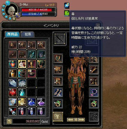 「wndpos.dat」を削除し終わったらゲーム内にキャラでログインすれば、追加スロットの位置がリセットされます。