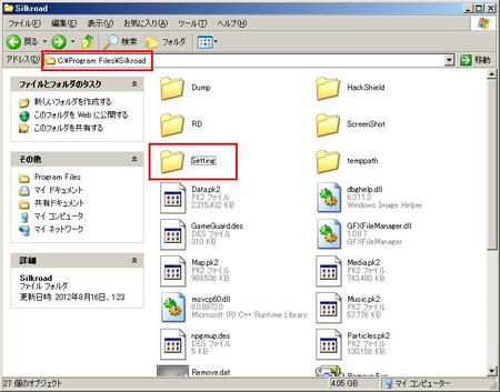 シルクをインストールしてある場所は初期設定なら「C:\Program Files\Silkroad」です。