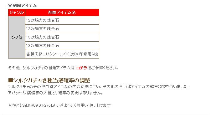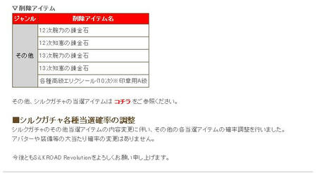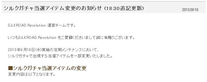 シルクガチャ当選アイテム変更のお知らせ (18:30追記更新)