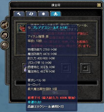 実験台は過去の錬金イベを経て作ったBエリク使用の98不可+14盾。