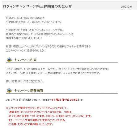 2012年11月1日(木)00:00~2012年11月27日(火)23:59まで