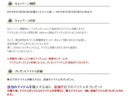 2013年10月13日(日)23:00 ~ 2013年10月20日(日)23:00まで