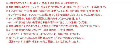 ※モンスターはイベント開始後一斉に出現しません。その為、街の外に待機して参加される