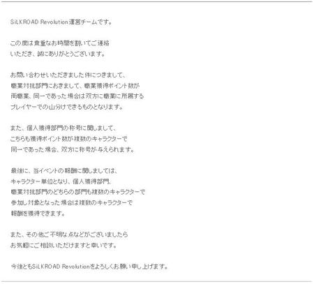 SiLKROAD Revolution運営チームです。