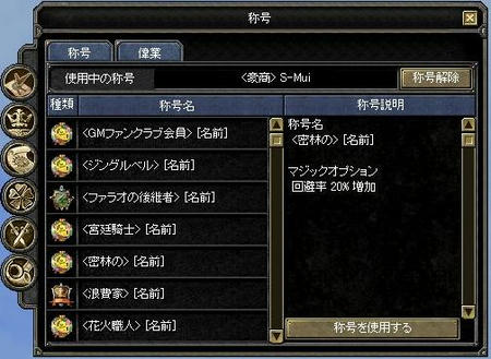 称号窓でもちゃんと回避20%と表示されます。