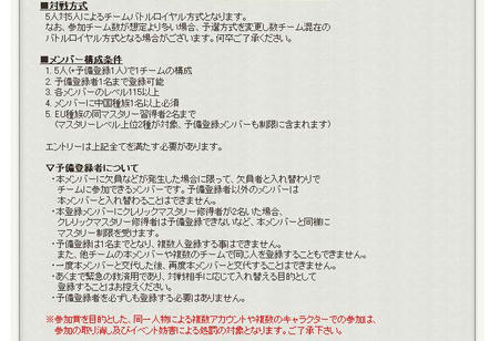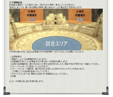 ・出場者は試合開始のカウントダウン開始まで、自身およびパーティメンバーへのバフの詠唱禁止