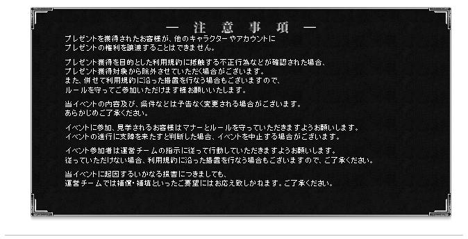 ※参加賞を目的とした、同一人物による複数アカウントや複数のキャラクターでの参加は、