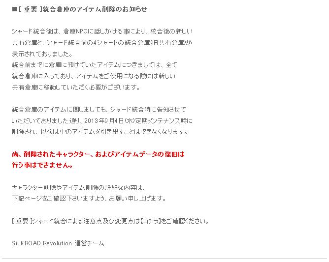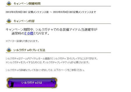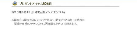 2013年9月4日(水)定期メンテナンス後 ~ 2013年9月11日(水)メンテナンス開始まで