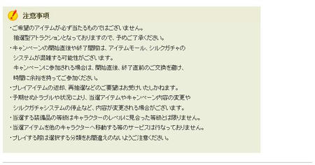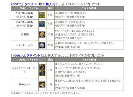 7000シルクポイント以上購入毎に、以下のアイテムをプレゼント