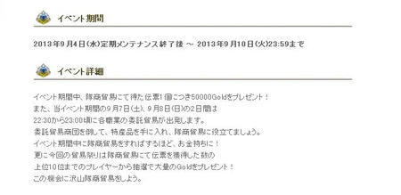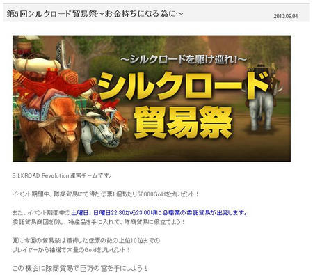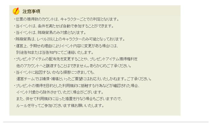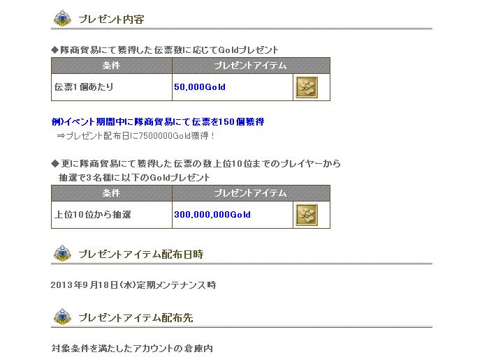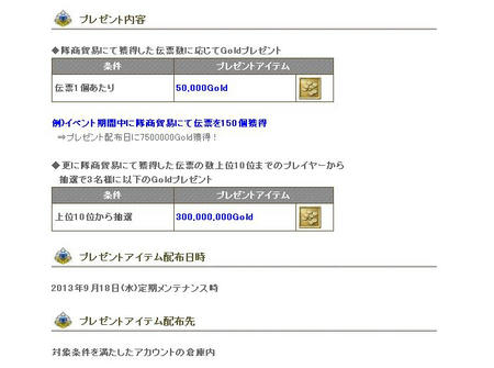 イベント期間中、隊商貿易にて得た伝票1個につき50000Goldをプレゼント!