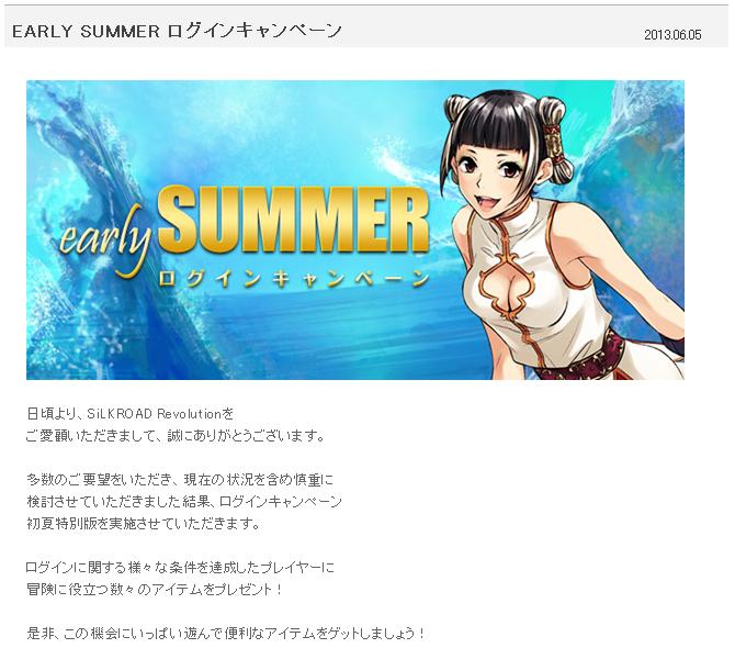 EARLY SUMMER ログインキャンペーンのまとめとか。