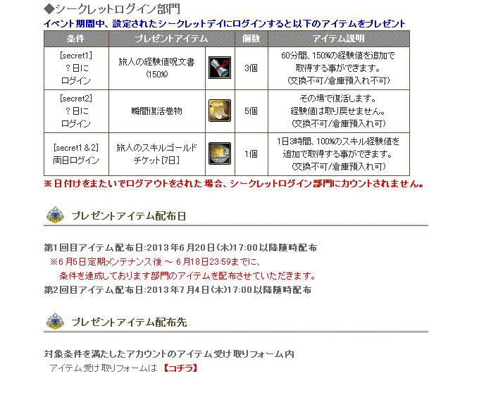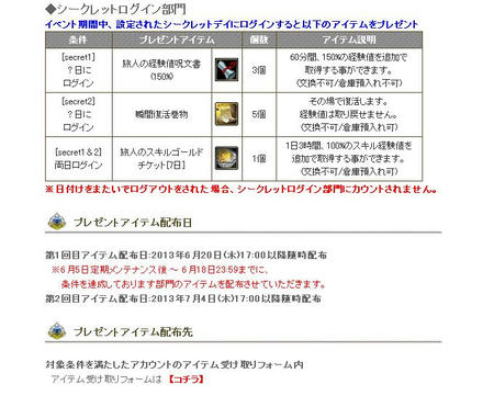 第1回目アイテム配布日:2013年6月20日(木)17:00以降随時配布