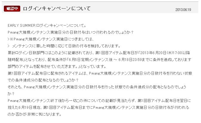 ログインイベントをやるのはいいんだけど、Pmang大規模メンテがあるってわかってるのこのタイミングで開始しなくても・・・