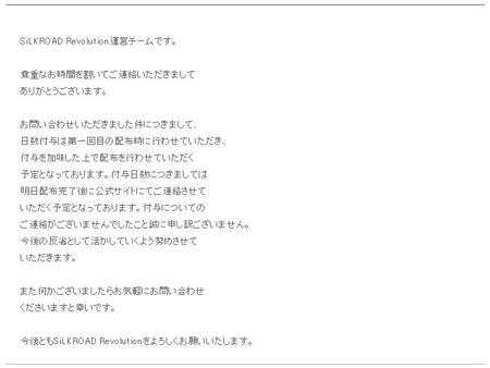 今後ともSiLKROAD Revolutionをよろしくお願い申し上げます。