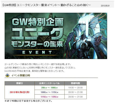 【GW特別】ユニークモンスター襲来イベント~動かざること山の如く~