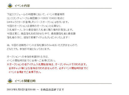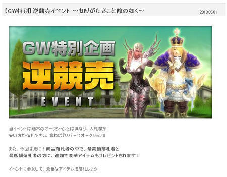 ※今回の逆競売イベントは落札額分のGoldはいただきません。