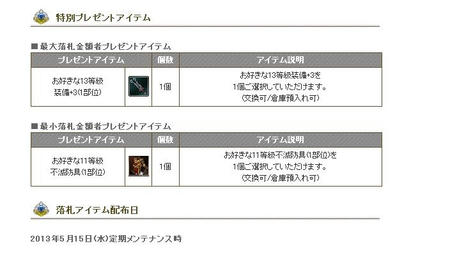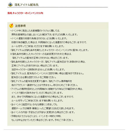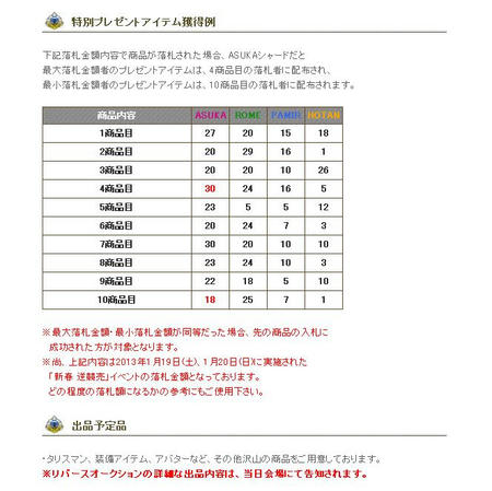 ※落札者の発表はアイテムの配布をもってかえさせていただきます。