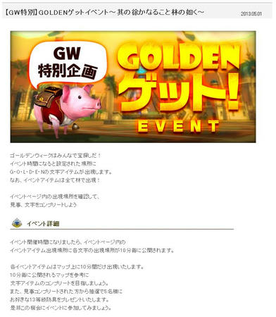 【GW特別】GOLDENゲットイベント~其の徐かなること林の如く~