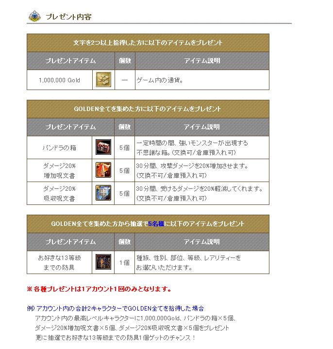 ・文字を2つ以上拾得した方に以下のアイテムをブレゼント