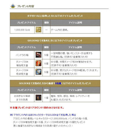 ・GOLDEN全てを集めた方に以下のアイテムをプレゼント