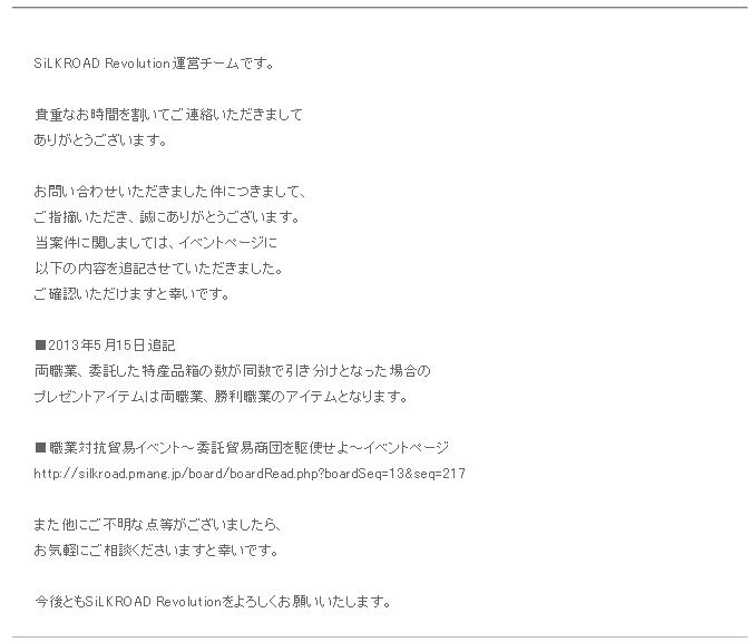 2013年5月15日(水)定期メンテナンス後に公式サイト内「連絡帳」宛にご連絡いたします。