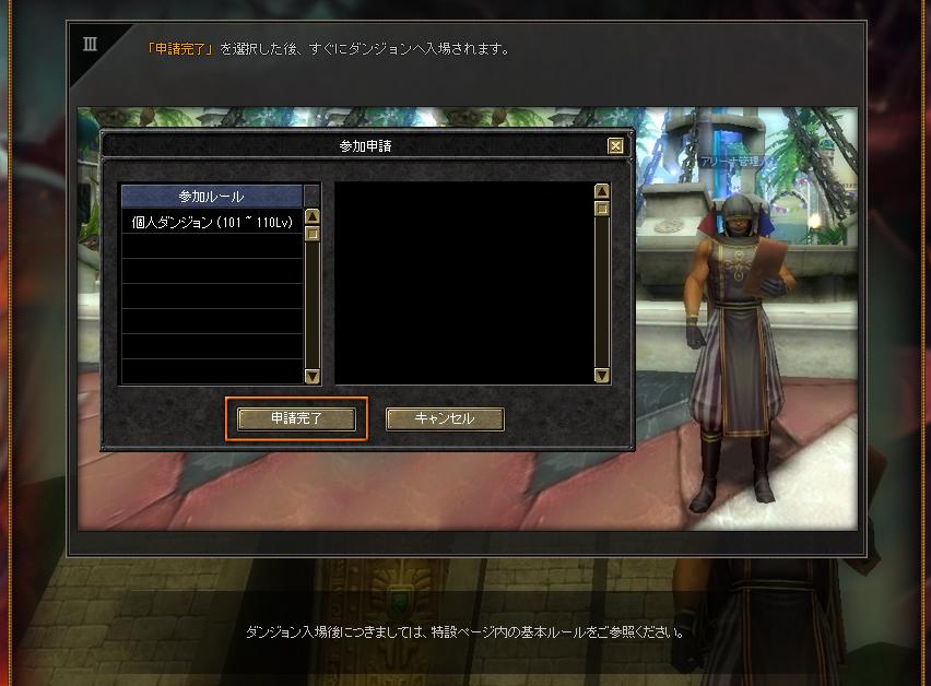 →アリーナ管理人からレベルに適したダンジョンを選択し、「申請完了」を選択すればすぐに入場可能