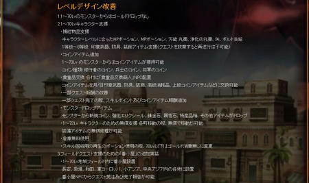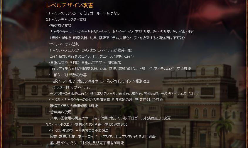→1~70キャラへ消耗品各種と装備の無料支給システム追加