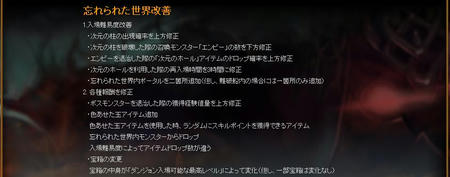→次元の柱出現率上昇、次元の柱からのエンビー出現数減少、エンビーからの次元のホールドロップ確率上昇