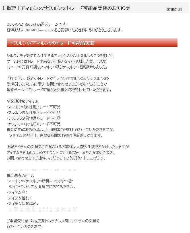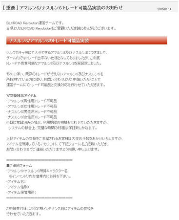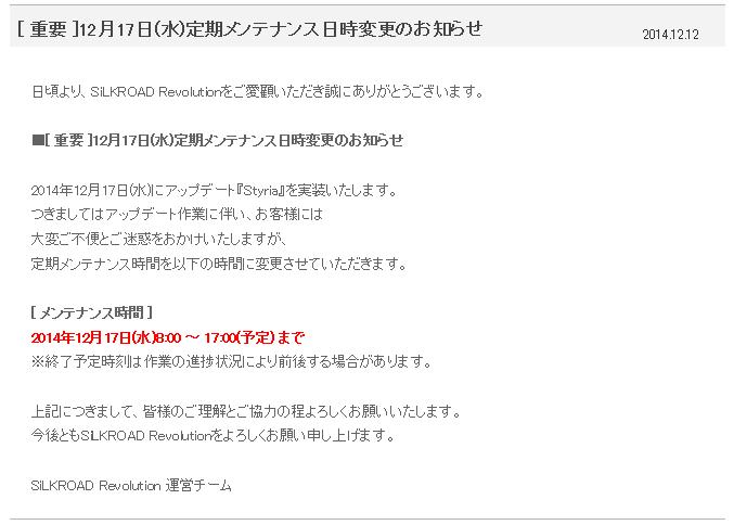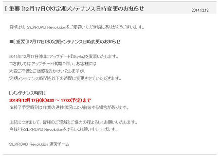 SiLKROAD Revolutionへの統合によってゲーム内の状況が変化することとなりましたが、