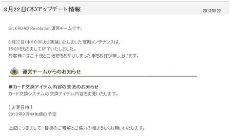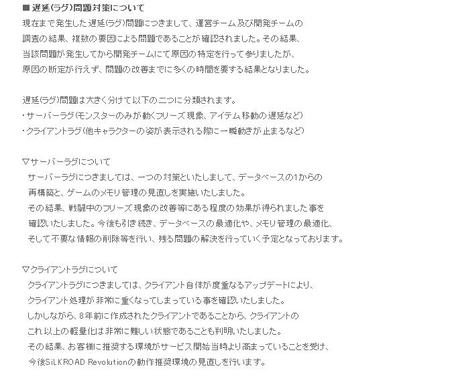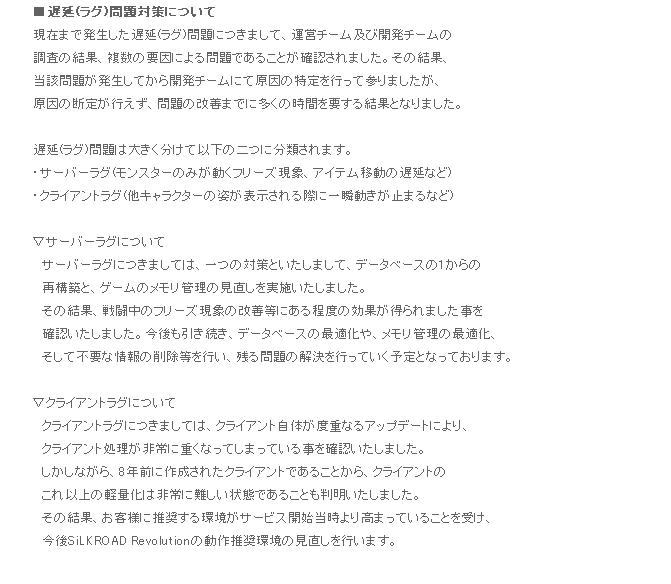 [ 重要 ] 遅延(ラグ)問題及び一連の補償について2013.06.26SiLKROAD Revolution運営チームです。
