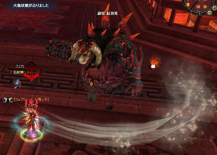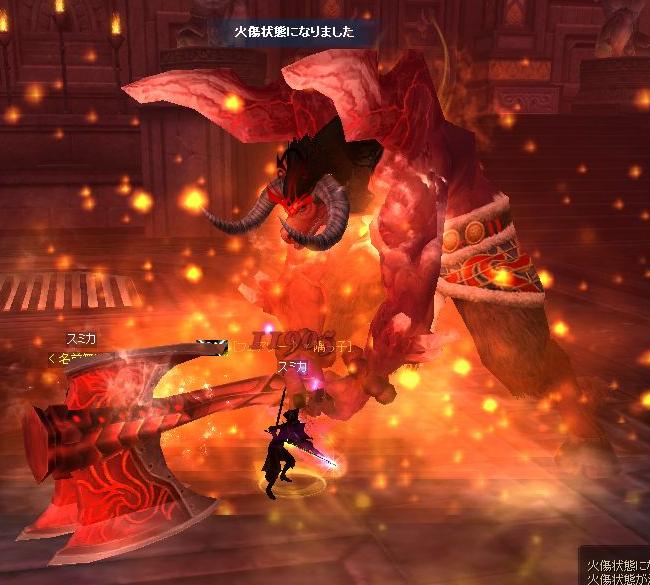 残りHPが僅かになると、取り巻きとして首領 火焔鬼2、火焔魔鬼3、火焔爆狂3を召還。