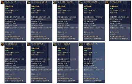 11級タリスを全部使った後にクエ報告すると武神武器の一覧。