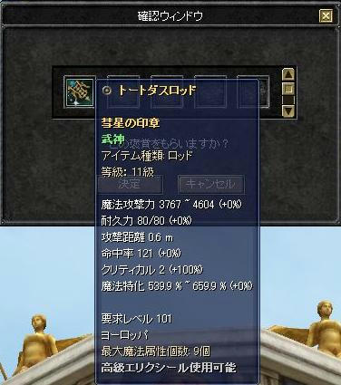 のはずが、武神ロッドがあっさり+5になった付けか全く+5にならない!