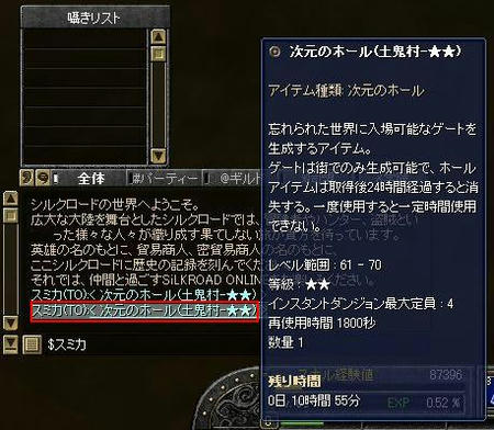 この時点でアイテムリンク機能で送信したホールは残り10時間56分。