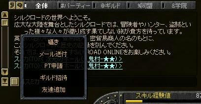 囁き、メール送付、PT申請、ギルド招待、友達追加。