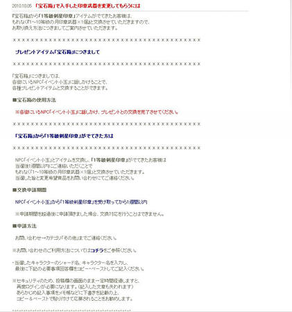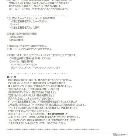 宝石箱から銅剣が出てから1週間以内に申請すれば、1級~10級の好きな月武器に変更できるというもの。