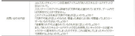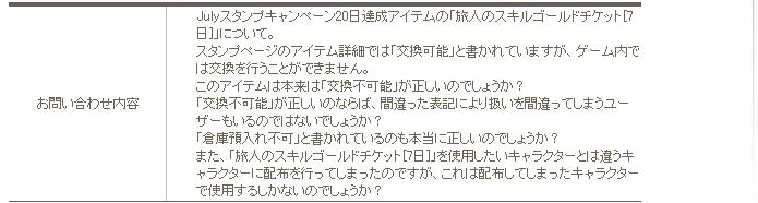 前にスタンプでもらえたスキル7日は交換不可&倉庫可能だったから、倉庫と交換逆に書き間違えてるだけで今回のも交換不可&倉庫可能が本当は正しいとじゃないかな?と思ってたんだけど・・・