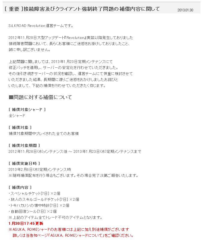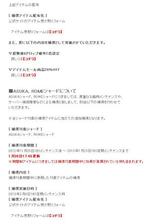 2012年11月28日(水)メンテナンス後 ~ 2013年1月23日(水)定期メンテナンスまで