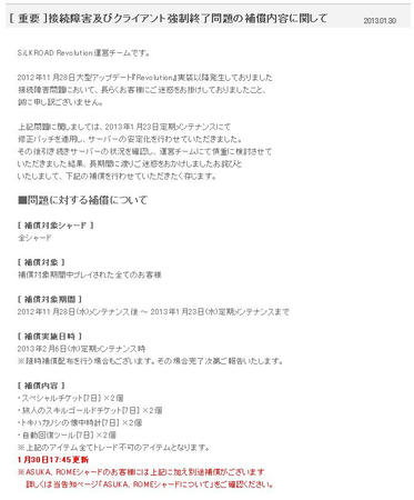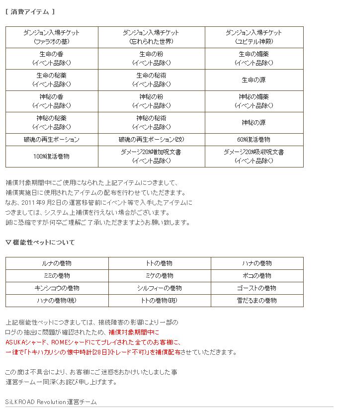 アイテム補償はフェロ装備が対象外っての以外はまあ納得。