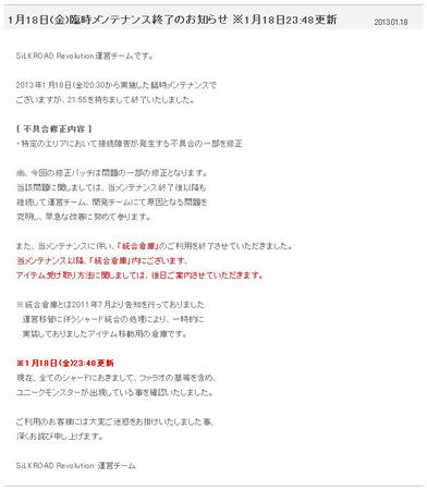 1月23日のメンテで修正パッチ。