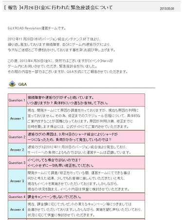 遅延(ラグ)は2012年11月28日のバージョン統合後より発生しており、