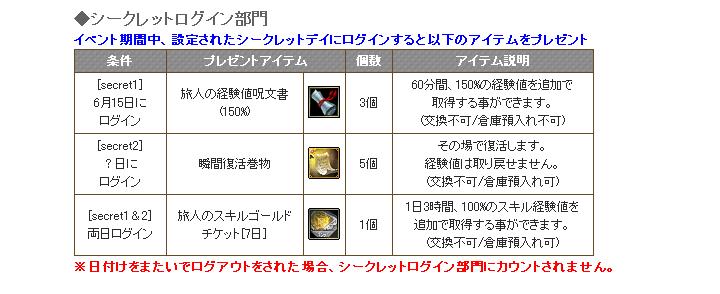 シークレット1個目は6月15日(土)ログイン分だったみたい。