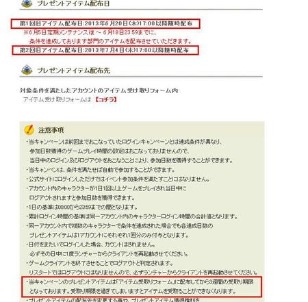 第1回目アイテム配布日:2013年6月20日(木)17:00以降随時配布