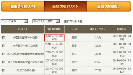 となっております。受取り期限を過ぎてしまいますとアイテムを受取ることができなくなります。