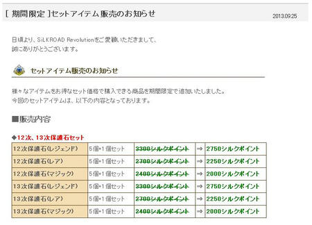 [ 期間限定 ]セットアイテム販売のお知らせ 2013.09.25