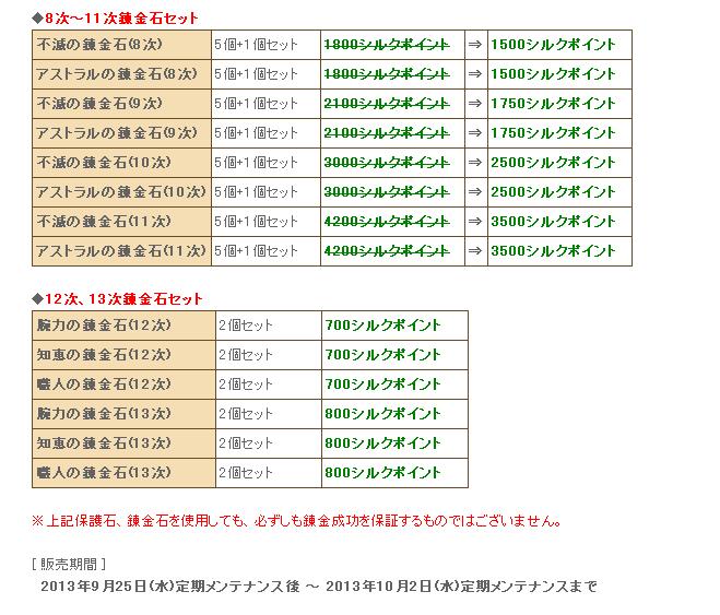 2013年9月25日(水)定期メンテナンス後 ~ 2013年10月2日(水)定期メンテナンスまで