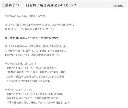 [ 重要 ]シャード統合終了処理実施完了のお知らせ2013.09.25