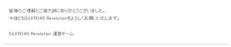 今後ともSiLKROAD Revolutionをよろしくお願い申し上げます。