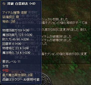 +7の不可から順に錬金していったけど失敗続きで+7不可の在庫がなくなる。