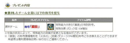 そのため、『群狼の刻 ~狼子獣心~』のイベントにて『火炎の』称号を選択した